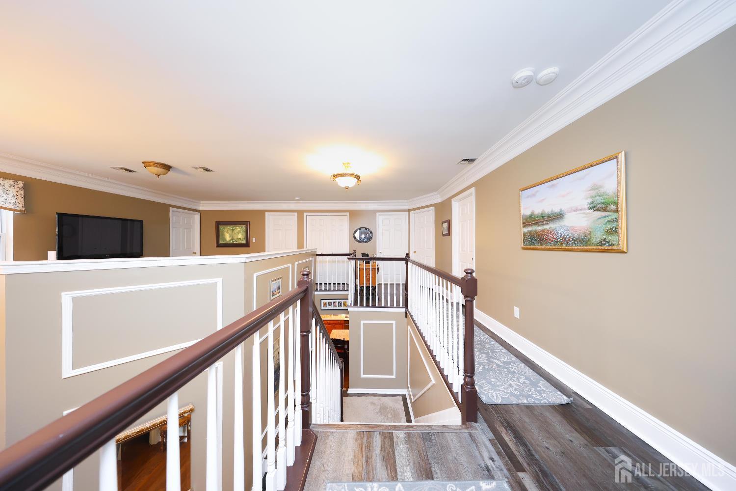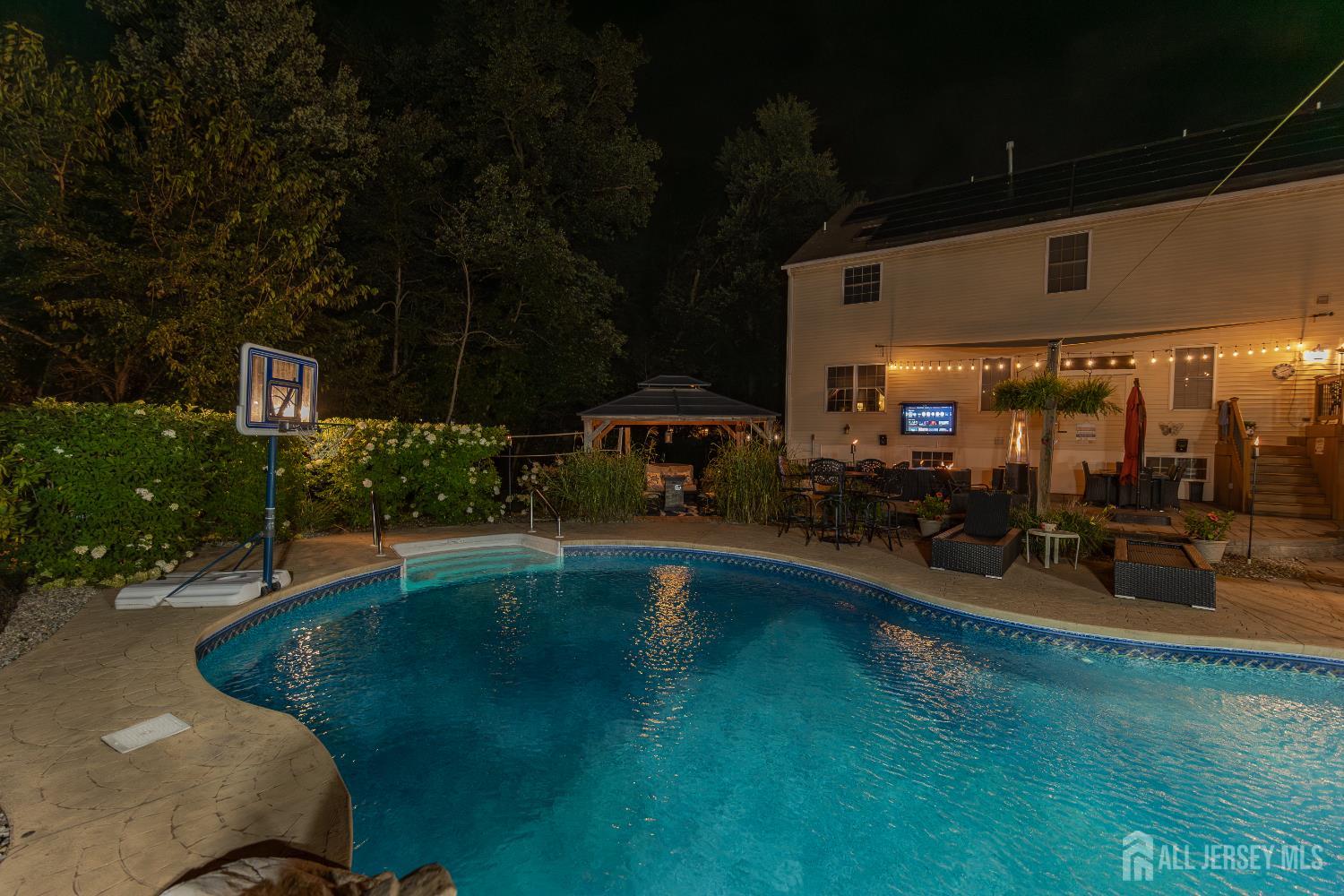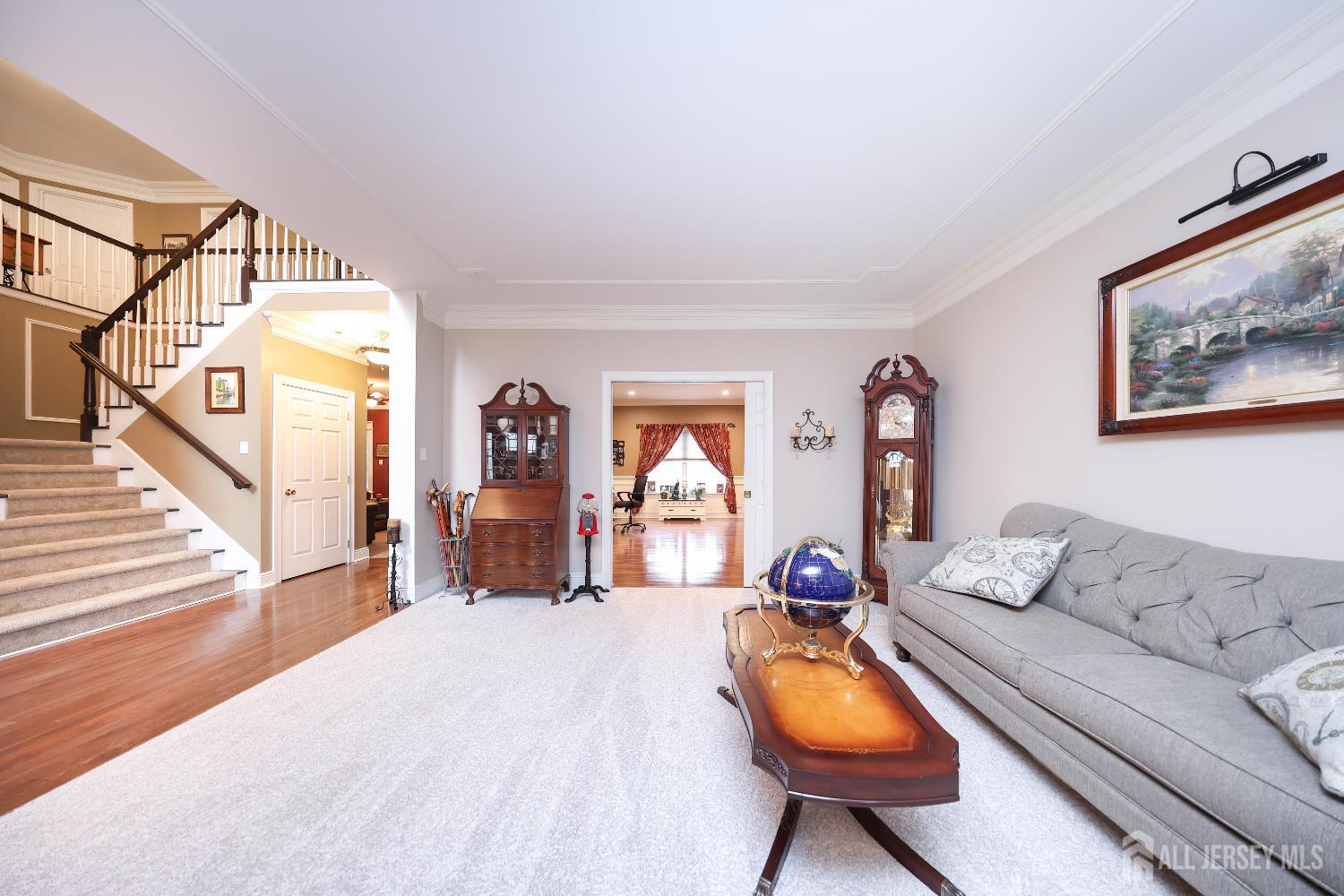 Welcome to 8 Clearbrook Court--an exceptional residence tucked away on a peaceful cul-de-sac, offering the perfect blend of space, comfort, and lifestyle. This impressive 6-bedroom home, plus a versatile loft and 4.5 bathrooms, is thoughtfully designed for both everyday living and entertaining. Step into a grand two-story foyer that sets the tone for the home's elegant yet inviting feel. The open floor plan seamlessly connects expansive living areas, creating an ideal setting for gathering with family and friends. The large eat-in kitchen serves as the heart of the home, while the finished basement with high ceilings provides additional space for recreation, relaxation, or entertaining. Custom moldings throughout add a refined touch to every room. Set on a private quarter-acre-plus lot, the outdoor space is just as impressive. Enjoy your own backyard retreat featuring an in-ground heated pool, surrounded by lush greenery that offers both privacy and tranquility. Whether hosting summer gatherings or enjoying quiet mornings, this outdoor oasis delivers a true sense of escape. Adding even more appeal, solar panels make this home as efficient as it is beautiful, offering the benefit of virtually no energy costs. Perfectly positioned on a cul-de-sac, the home offers a sense of safety and community that enhances everyday living. The setting provides a peaceful environment with minimal traffic, ideal for outdoor enjoyment and a welcoming neighborhood feel. From its spacious layout to its serene surroundings, 8 Clearbrook Court is more than just a home--it's a place where comfort, connection, and lasting memories come naturally.