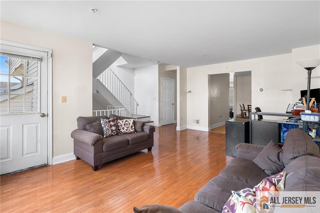 Welcome to this light-filled three-level Clipper model, the largest layout in Harbortown Crossings, offering 4 bedrooms, 3.5 baths, and 2,045 sq. ft. of living space. The main level boasts a bright living and dining room with hardwood floors and terrace access. An open-concept kitchen flowing into the den with hardwood floors. A powder room completes this level. Upstairs, the entire level features newer LVP flooring. The primary suite offers a large WIC and a bath, along with two additional bedrooms, a hall bath, and laundry room with closet. The lower level provides a private bedroom with full bath and access to the two-car garage. Recent updates include a newer AC (2023) and hot water heater (2020). Enjoy community amenities such as shuttle to Woodbridge Train Station plus the Perth Amboy Harborside Marina featuring two fishing piers and a paved waterfront pathway and beach access.