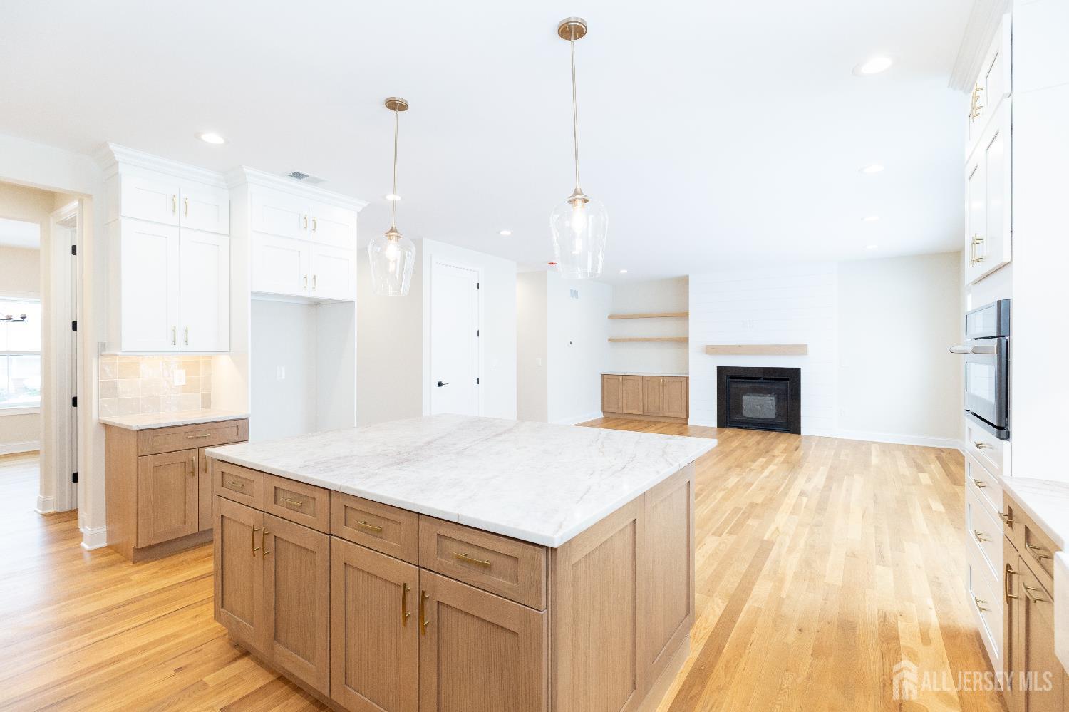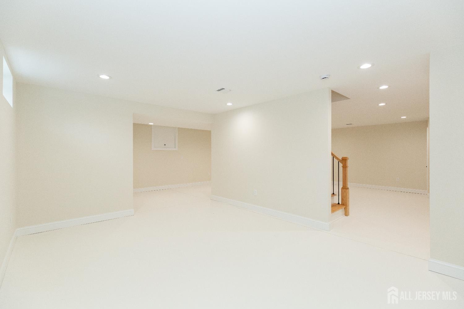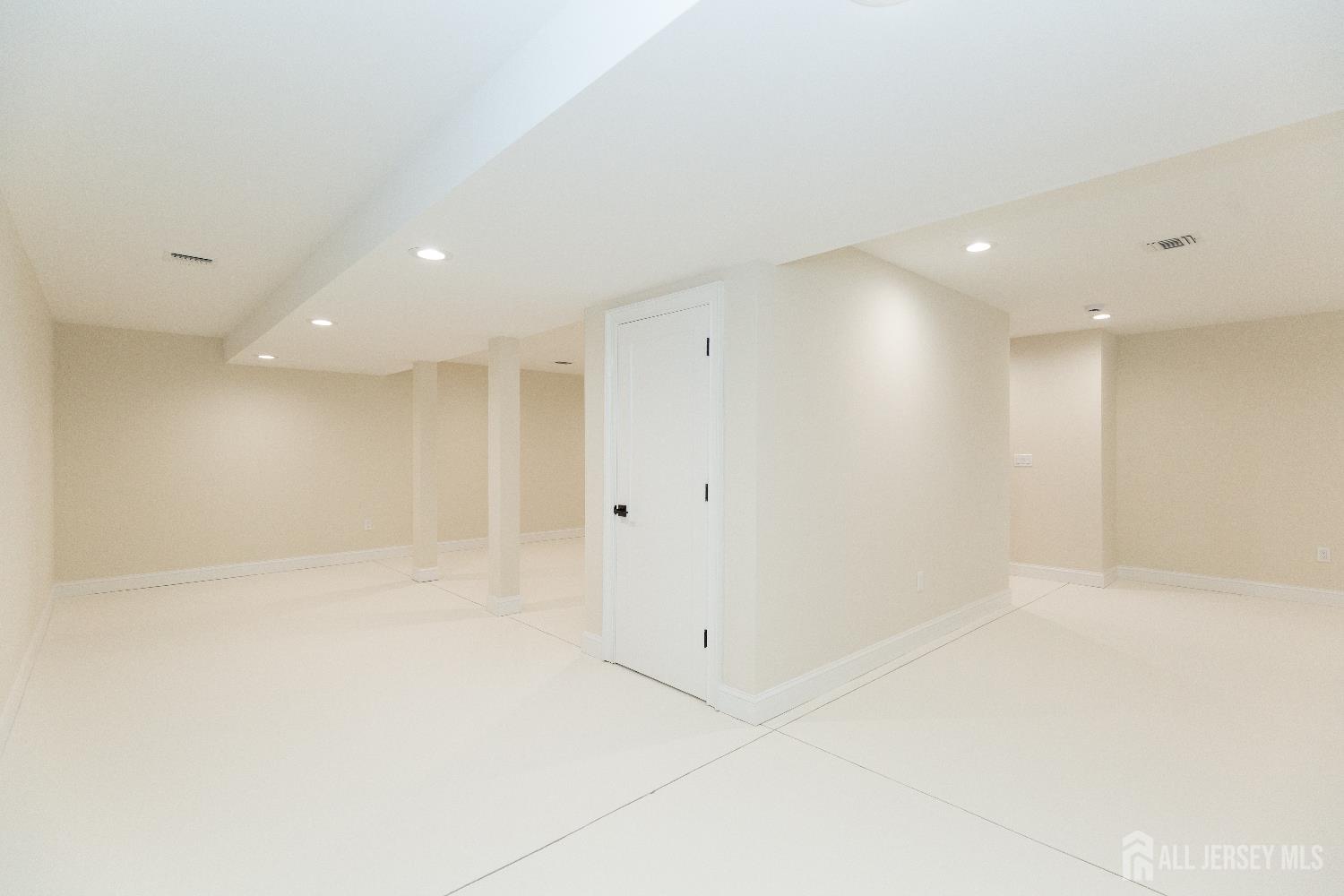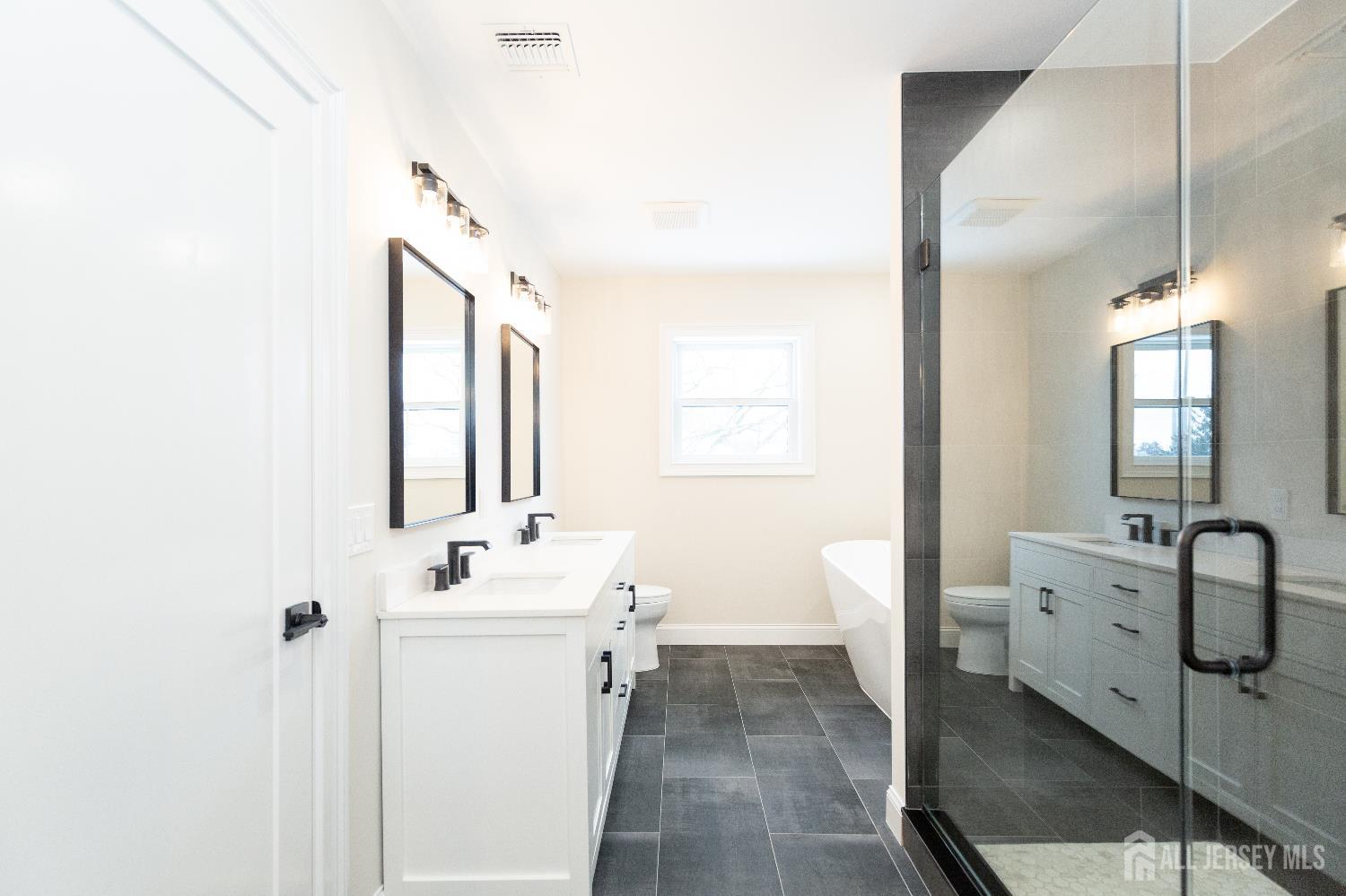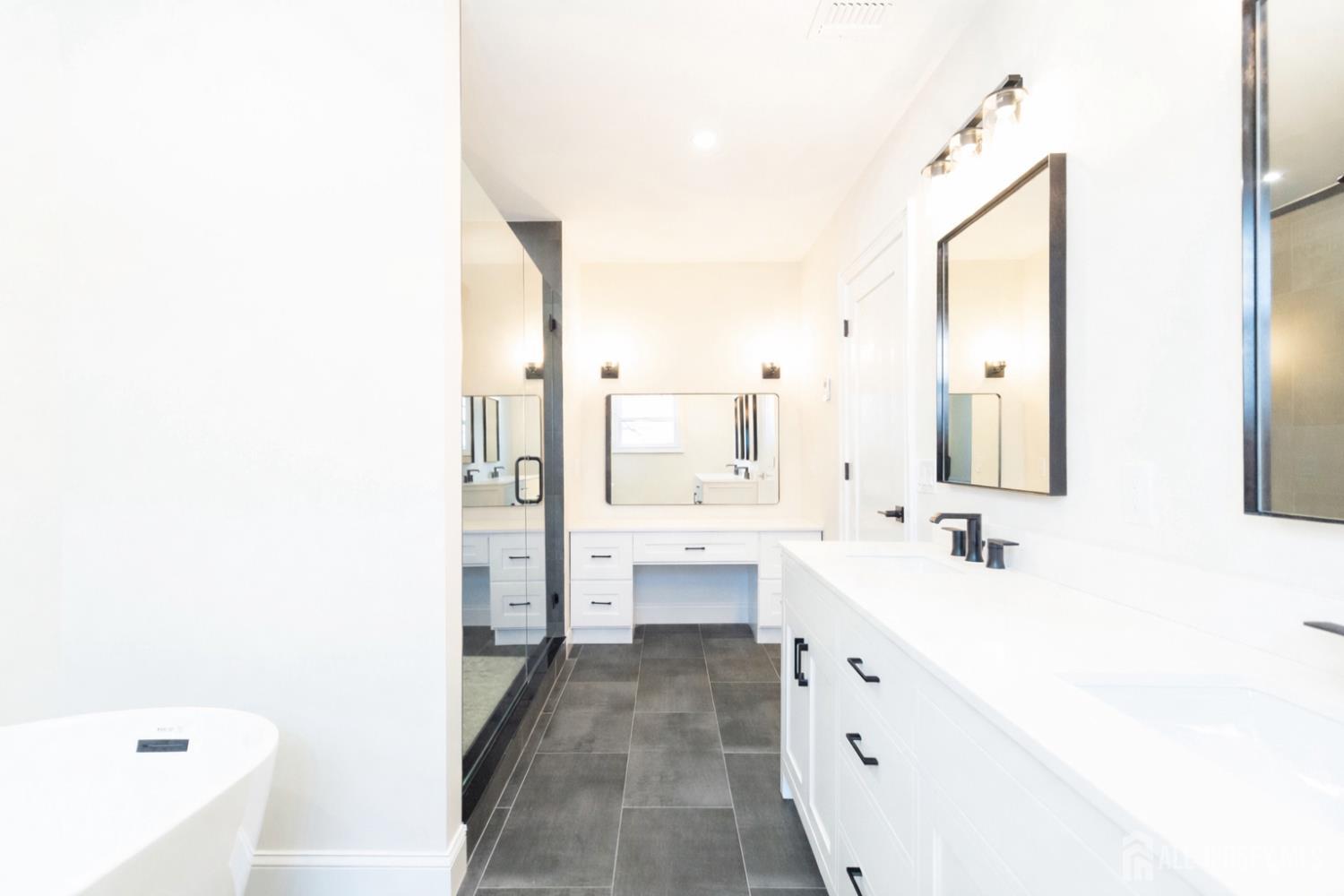 Custom built dream home featuring 5 Bedrooms, 4 Full baths and a fully finished basement. Grand modern exterior featuring Bone white siding with dark gray stone across the entire front of the house including the covered front porch, black windows and gutters, plus all overhangs have black metal roof and recessed lights. Enter the home into a dramatic 2 story foyer, with stunning oak hardwood floors in every direction. All 1st floor interior doors are 8' tall. Absolutely gorgeous gourmet Kitchen with classic Taj Mahal quartz countertops, white undermount farmhouse sink, double island, lower wood cabinets and bone white shaker upper cabinets to the ceiling, all matte black stainless Cafe appliances, including 36'' gas range, built-in wall microwave and convection oven, double drawer dishwasher, plus a butlers pantry with full storage closet and second sink and wine refrigerator. Nice sized 1st floor bedroom with adjacent full bathroom finish out the main level. Upstairs are 4 additional oversized bedrooms including the primary with tray ceilings, 2 huge walk-in closets and a spa-like ensuite bathroom with fully tiled shower stall, soaking tub, double vanity with 2 sinks and make-up vanity. Second bedroom with walk-in closet and private bath, plus a common hallway bathroom and 2 more large bedrooms. All bedrooms have recessed lighting. 2nd level laundry area. Finished 11 course 800+ sqft basement with recessed lighting, lots of storage, including large crawl space under the addition and utility room with tankless water heater, panel and lower level HVAC. Upstairs zone is in the attic. House has interior and exterior French drains. Just 1.1 miles to Metuchen Train Station and Downtown and 1.3 miles to MetroPark Station. A block away from Roosevelt Park and Close proximity to the GS Parkway, Rt 287 and the NJ Turnpike. This location cannot be beat!