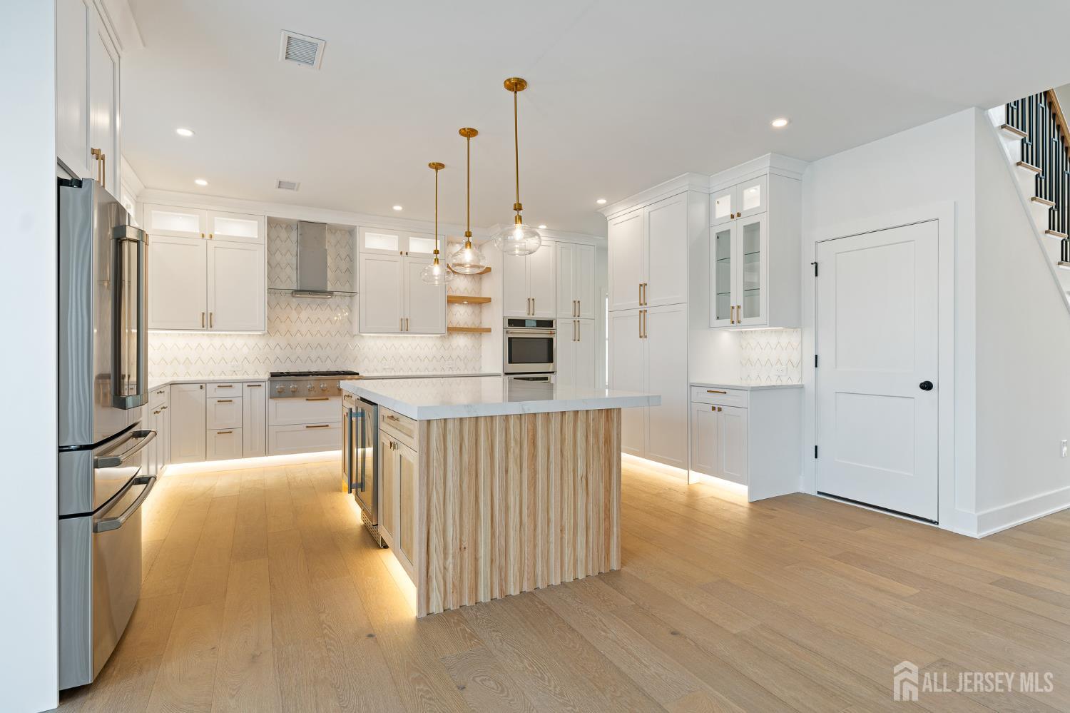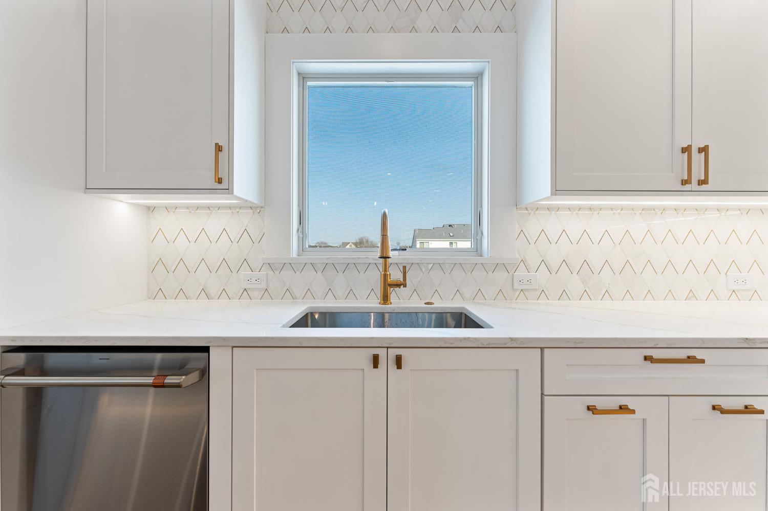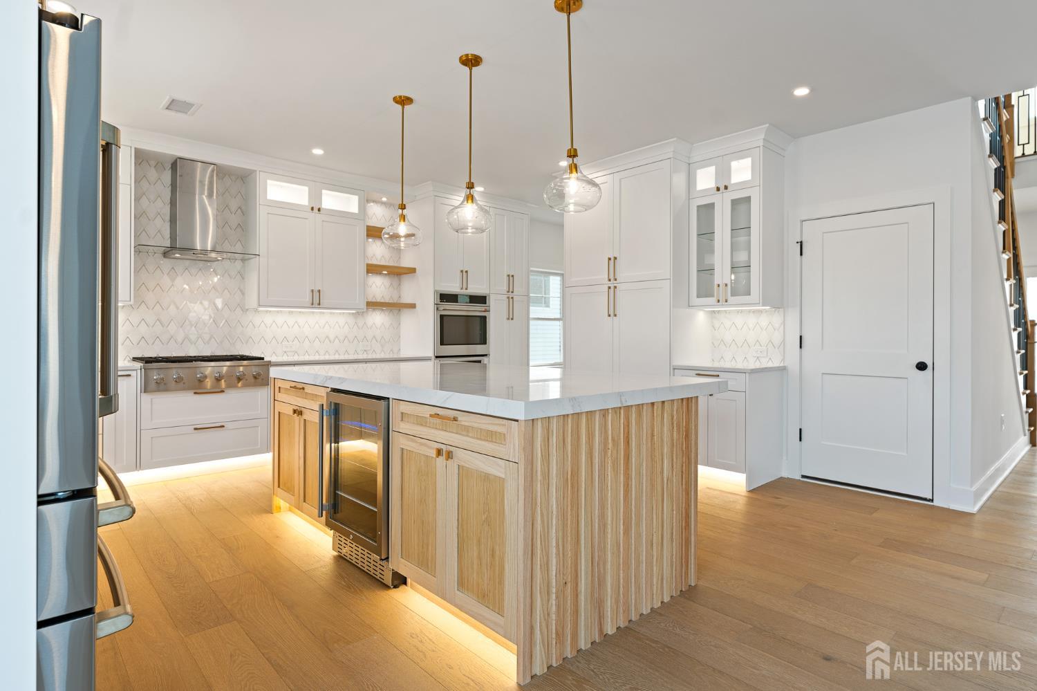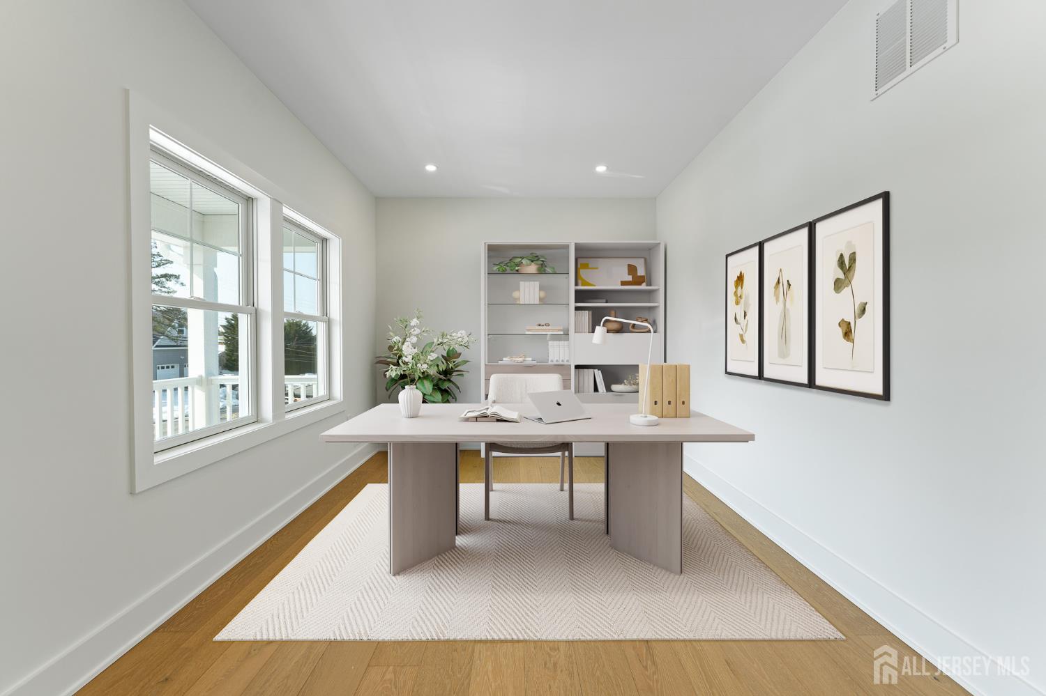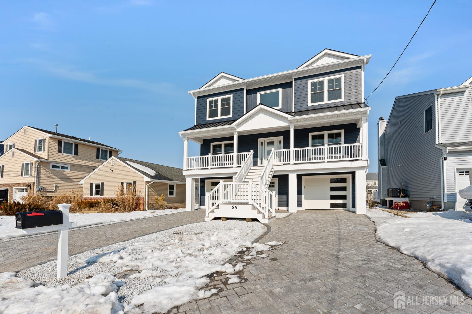 Welcome to coastal luxury living in this exceptional new construction home offering a little over 3,000 square feet of thoughtfully designed living space. Built with high-end materials and attention to detail throughout, this 5-bedroom, 3.5-bath residence delivers both style and function. The exterior makes a striking impression with Andersen windows and doors, James Hardie siding extending all the way to ground level, and fiberglass decks built for durability and low maintenance. Outdoor living shines with a large paver patio, a brand-new dock, vinyl bulkhead, and a rare full-glass garage door at the rear of the homeperfect for seamless indoor-outdoor access and entertaining. Inside, the fully finished ground-level garage area offers flexibility and additional living space. Throughout the home, you'll find elegant 7'' white oak hardwood floors, a gas fireplace anchoring the main living area, and a modern open layout designed for today's lifestyle. The kitchen is equipped with premium stainless steel Caf appliances, combining performance with sleek design. The first level of the home features a dedicated home officeideal for remote work or a private studyalong with a formal living room that adds a touch of timeless sophistication while still flowing seamlessly into the rest of the living space. The primary suite is a true retreat, featuring a private walkout balcony, spacious walk-in closets, and a spa-like bathroom with heated floors. With five generously sized bedrooms and 3.5 beautifully finished bathrooms, this home offers ample space for family, guests, or a home office setup.