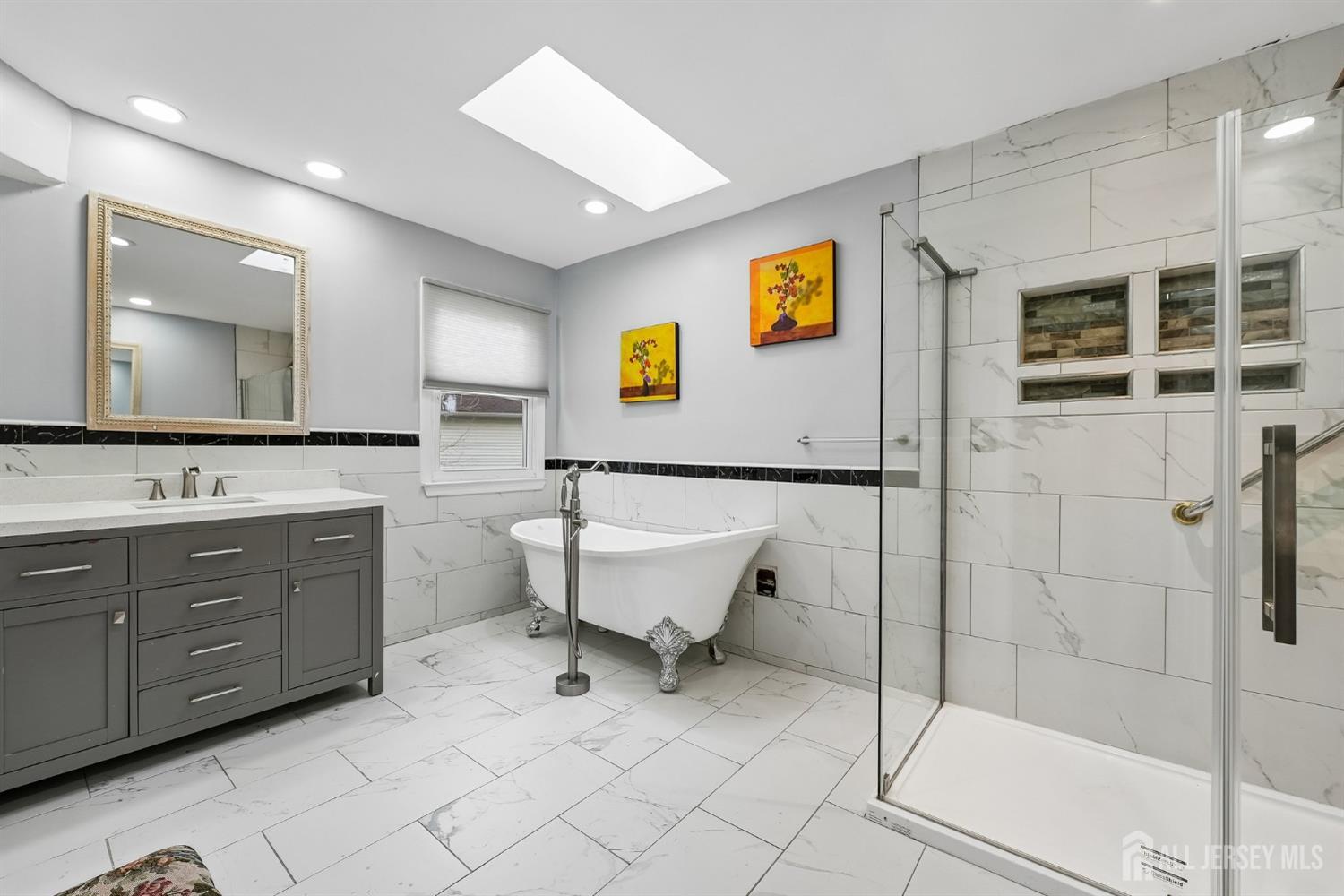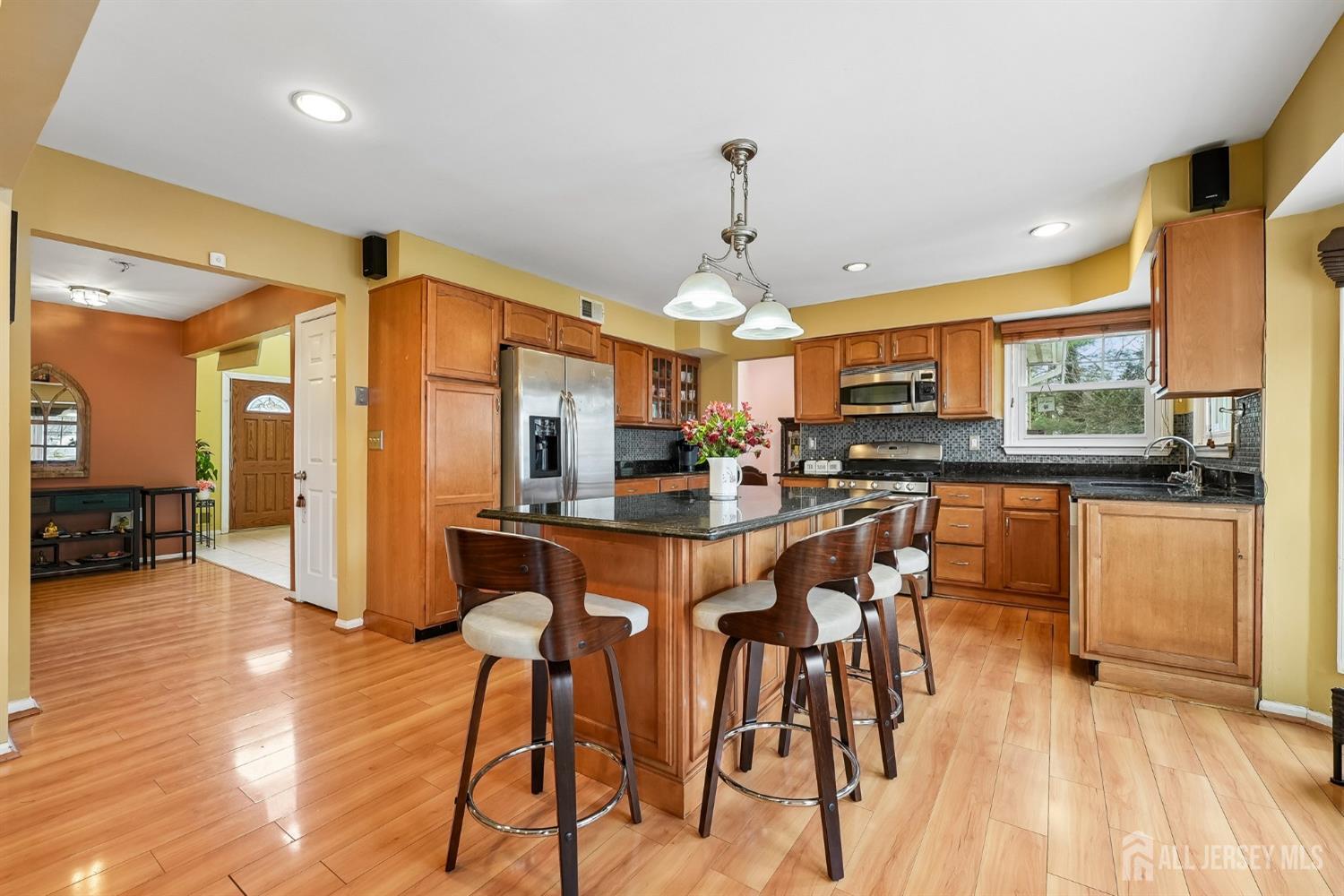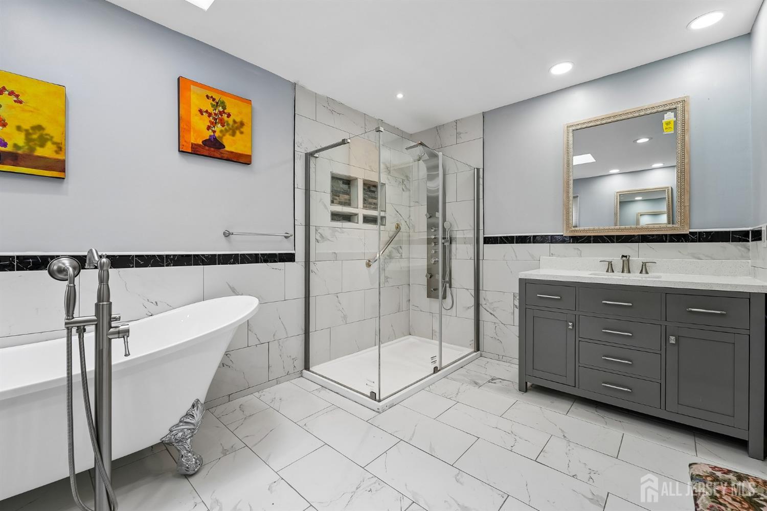 Light & Bright 4 Bedroom/4 Full Bathroom Colonial w/1st Floor Bedroom Suite in Paddington Park. Ideal Location on Quiet Cul-De-Sac Street w/Sidewalks. Nearly 3,800 Square Feet of Living Space (2,989 Above Ground Plus Another 795 in Finished Basement). Open Floor Plan with Hardwood Floors. Gourmet Eat In Kitchen w/Granite Countertops, Center Island, Stainless Steel Appliances, Lots of Cabinet Space & Sliders to Outside Deck. Large Living Room/Dining Room Combo w/Cathedral Ceilings & Skylights Perfect for Entertaining. Cozy Family Room w/Wood Burning Fireplace, Large Windows & Recessed Lighting. 1st Floor Bedroom w/Brand New Full Bathroom Ideal for In Law Suite or Au Pair Suite. Inviting Two Story Tile Foyer. 1st Floor Laundry. Huge Primary Bedroom Suite w/Remodeled Full Bathroom Including Dual Sinks, Soaking Tub & Stall Shower, Sitting Area, WI Closet and View of Private Backyard. Two Additional Spacious 2nd Floor Bedrooms w/Large Closets & Easy Access to Main Bathroom. 2nd Floor Loft w/Lots of Options. Amazing Finished Basement w/Full Bathroom, Recreation Room, Bonus/Game Room, Office/Den, Storage and Utility Rooms. Huge Private Deck w/Fenced In Backyard. Freshly Painted Two Car Garage w/Openers. Public Water & Sewer. Excellent North Brunswick Schools. Close to Major Highways (Routes 1, 287, NJ Turnpike & GS Parkway), Mass Transportation to NYC (New Brunswick Train Station & Bus), Hospitals (RWJ & St. Peters) and Shopping/Conveniences. Home Warranty Too. A MUST See!