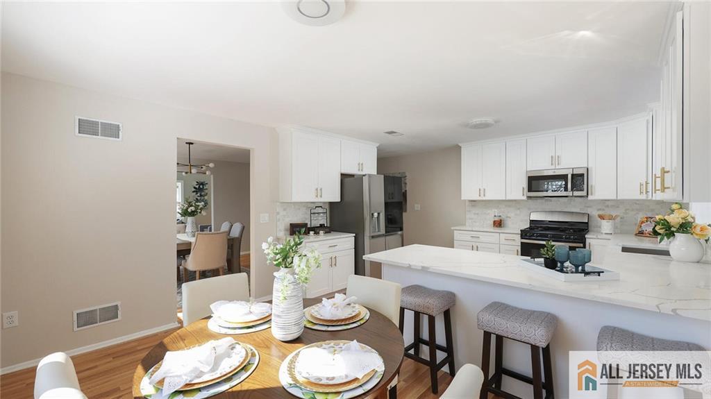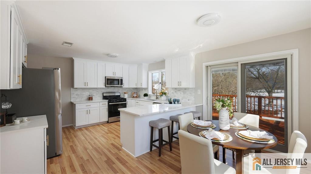 What a gem! Welcome home to this gorgeous and rarely found oversized 4-bedroom, 3 full bath bi-level, ideally located in a highly desirable section of Piscataway. Tucked away on a large property at the end of a very private cul-de-sac, this bright and airy home offers space, privacy, and comfort throughout. First floor: Step inside and on your right is the spacious living room featuring soaring high ceilings and a large bow window that fills the space with abundant natural light. Moving forward is the formal dining room, perfect for gatherings, which flows into the beautiful white kitchen complete with stainless steel appliances, Corian countertops, elegant marble backsplash, breakfast counters, and an eat-in area. The kitchen offers direct access to a large private deck overlooking a peaceful and tranquil backyardideal for outdoor dining and entertaining. To the left of the stairs are three generously sized bedrooms, including a primary bedroom suite with a full bath and stall shower. A hallway full bath with tub/shower, along with a convenient laundry area, completes this level. Downstairs is equally spacious and versatile. Upon entering, on your left is the oversized two-car garage entrance. On your right is an expansive family room, perfect for relaxation or recreation. Moving forward, on the right is the fourth bedroom with an adjoining room that can be used as a home office. On the left is an additional room with cabinetry and countertops, offering excellent space for storage, food preparation, or entertaining. A second laundry hookup is also located on this level. Hardwood and wood-like floors throughout. Bright, airy, and thoughtfully laid out, this home offers exceptional space in a superb locationtruly a must-see! Notable updates: 2 brand new HVAC systems(new furnaces and new condensers 2026).