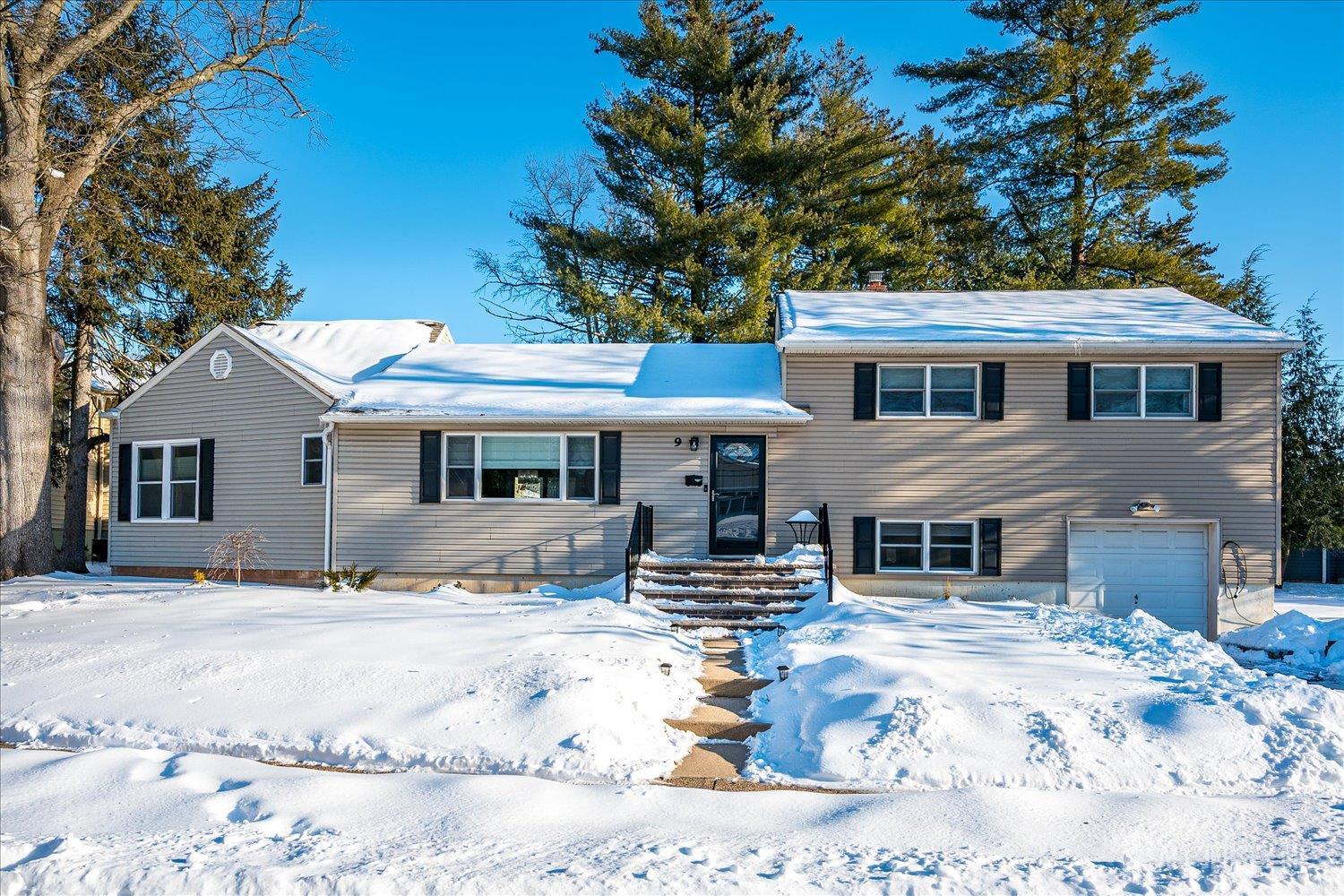 Welcome home to this exceptional split-level residence that perfectly blends space, comfort, and convenience in one of Edison's most desirable locations! This thoughtfully designed five-bedroom home offers a versatile floor plan that adapts beautifully to modern living. Enter to discover a main level featuring a welcoming living room that flows seamlessly into the dining area and kitchen, ideal for entertaining guests or enjoying everyday moments. A private bedroom and full bathroom on this level provide excellent flexibility for guests, a home office, or multi-generational living arrangements. You'll be wowed by the large den/office/family room with cathedral ceilings and a skylight. There is access to the backyard from this room as well as from the dining room. The upper level features three additional bedrooms, including a spacious primary bedroom with its own half bath for added convenience. The main bathroom completes this comfortable upper level. The lower level surprises with a fifth bedroom, half bath, and practical laundry room here, plus direct access to the attached one-car garage. Outside awaits your private backyard retreat, where a deck and patio create the perfect setting for summer barbecues, morning coffee rituals, or enjoying the expansive yard. Close proximity to many houses of worship, local shopping, including nearby grocery options, makes daily errands a breeze. With central air conditioning keeping you comfortable year-round, this home checks every box. Schedule your private showing today and discover your next chapter!