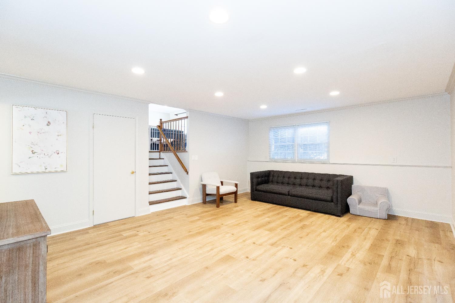 Beautifully updated split level home with over 2400sqft of usable living space on a quiet dead end street. 3 bedrooms, 3.5 bathrooms, 2-car attached side-entry garage with new doors and the most perfect finished basement you've ever seen! Foyer leads into the expansive living room with a large bay window, new flooring and recessed lights. Adjacent, is the formal dining room with brand new black fiberglass French doors that lead to the large deck. Eat-in kitchen with large 18'' floor tile, cherry cabinetry, granite counters, stainless steel appliances and pantry for extra storage. Upstairs, 3 bedrooms including the huge master suite with walk-in closet, second large closet and private bathroom with oversized wood vanity with white quartz top, sconce lights, modern black circular mirror and large walk-in shower stall, fully tiled with oversized black floor tile and vertical white subway tile walls. 2nd bedroom has new luxury vinyl plank flooring, plus all custom vanity, wardrobe and window treatment. Main bathroom with new modern textured hexagon floor tile, an oversized single maple vanity with granite top and white tiled tub/shower. Ground level family room with new flooring and recessed lights. Also on this level is a powder room and the laundry and utility room. Downstairs is the absolute showstopper! This basement has everything you could possibly want for entertaining; wall to wall luxury vinyl plank flooring, a gorgeous wet bar with wood cabinetry, quartz counters, and a mini fridge, a full bathroom with single vanity and a modern shower stall tiled with fluted neutral stone on the walls, new split system, and lots of storage! New hot water heater, new roof, new siding and gutters all done in 2025! Huge yard with deck, storage shed and driveway that fits 8-10 cars.