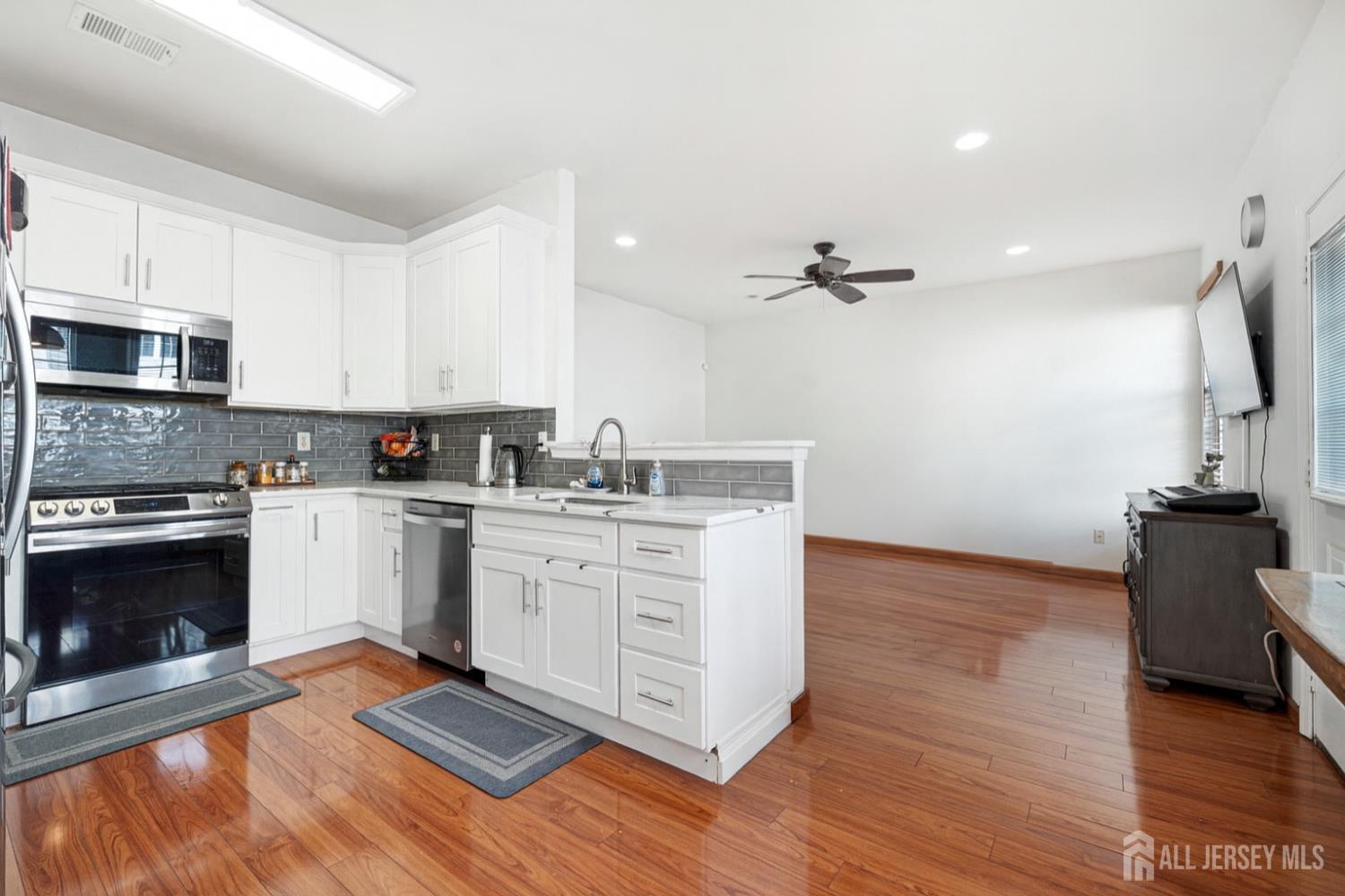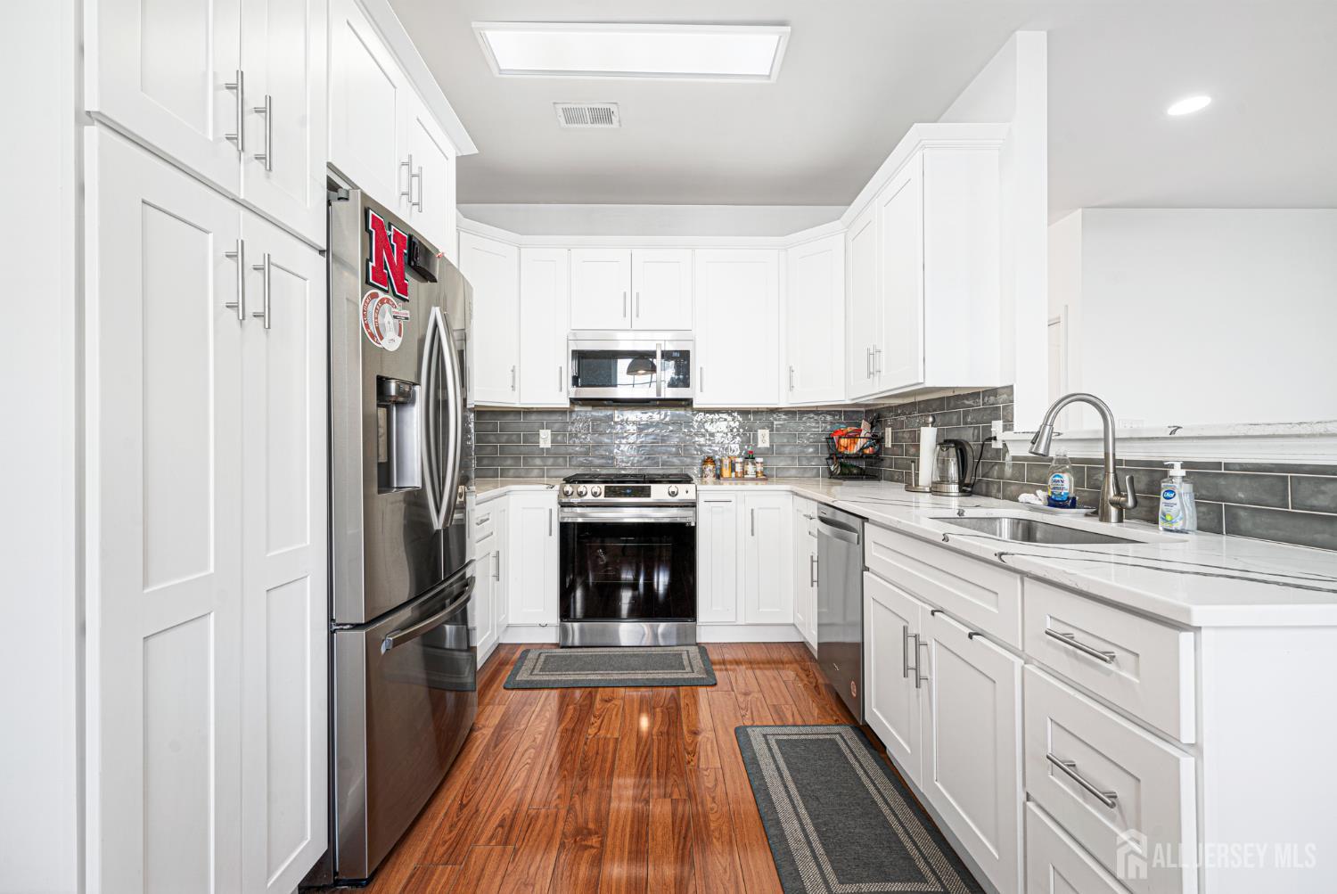Welcome to this beautifully updated 4-bedroom, 2.5-bath colonial home in the desirable Renaissance/Forest Park Community at 903 Swallow Ct, North-Brunswick(08902). Built in 2004 and offering 2,130 sq ft, the home features a TWO-Car garage, HOA for added amenities and curb appeal, and a FRESH interior PAINT job - just completed - meaning you can move in with confidence and enjoy a peace and privacy while being just minutes from top schools, shopping, dining, and major highways. Inside you'll find, the first floor boasts a grand foyer featuring High ceilings, spacious formal living and dining room with wood/laminate floors, and an open-concept layout perfect for entertaining with abundant sunlight inside. The stylish eat-in kitchen features quartz countertops, 42-inch cabinetry, and newer stainless steel appliances, seamlessly flowing into the family room. A powder room completes the main level. Upstairs, the expansive primary/master bedroom offers a large walkin closet and full bath. Three additional bedrooms with ceiling fans share a hall bath. A dedicated laundry room and recessed lighting throughout add modern convenience. The semi-finished basement with carpeting provides extra space for a gym, playroom, or media area. Step outside to a private backyard deck perfect for relaxing or hosting gatherings. A two-car garage and extended driveway for convenient parking offers ample parking, storage, or workshop potential. Owner-occupied and meticulously maintained, this move-in ready home has been thoughtfully updated and truly has it all.