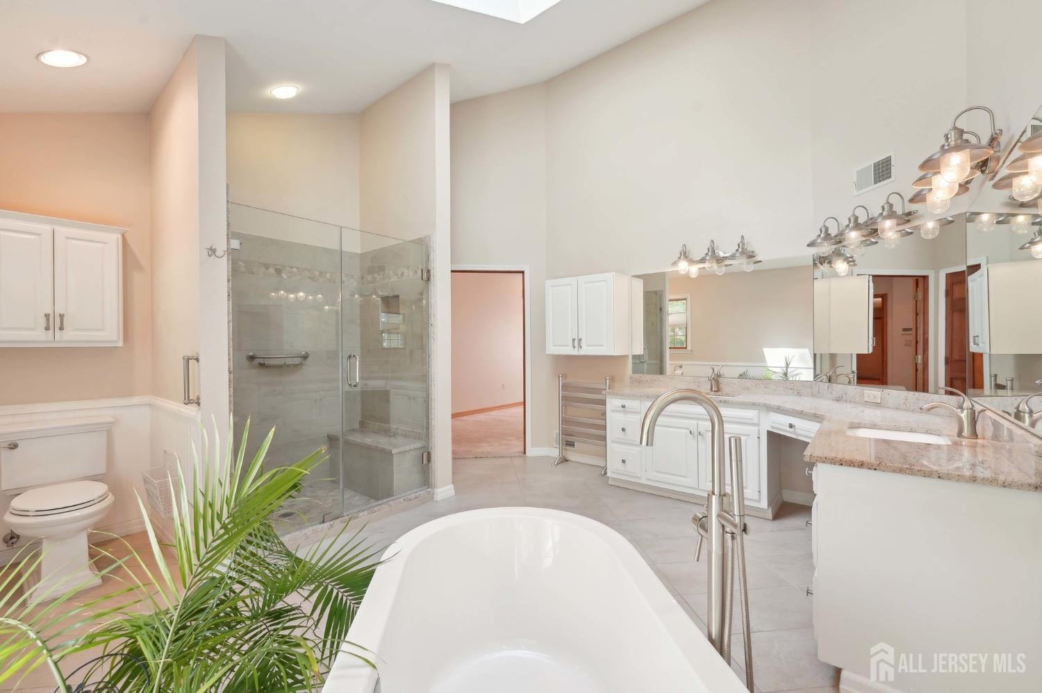 New Price! This beautiful custom home is an absolute dream! As you enter the front of the house along the charming brick path, notice the flowering bushes and custom wood/glass front door, with matching sidelights. Entering the two-story foyer, you can't help but notice the gorgeous view ahead, through the beautiful Anderson French doors and windows. But first, on your left is a large formal living room that can also be used as an office, or converted to a 4th bedroom. As you continue to walk straight to the back of the home, you will experience an exquisite kitchen with custom wood cabinets, plenty of storage, stainless steel appliances, and white Corian countertops which brighten this well-lit space even more. Opposite the kitchen is the built-in bar, complete with a sink for your family mixologist. The extra large great room completes this area, which has skylights, a custom-built stone fireplace, and a cathedral ceiling open to the loft above. The primary suite on the first floor is magnificent, with a bright, spacious, beautiful en suite that was updated in 2019. Upstairs, this home has two generous-sized bedrooms with plenty of closet space, a full bath, a loft that overlooks the great room & backyard, PLUS a 400 sq ft bonus space that can easily be converted into another primary suite. Plumbing has already been installed! However you chose to use this space, this home is full of storage areas. The basement is the entire footprint of the home and has very high ceilings, perfect for finishing as additional living space; the basement also has a sewer hookup for a future bathroom. While in the basement, don't forget to check out the amazing artwork-like hot water heating system. The owner was a Master Plumber, and everything about this home is meticulous. In the 2 1/2 car garage is an air compressor that is also piped into the basement. The extremely large Trex deck on the back of the home is the perfect spot to enjoy the seasons! And the expansive backyard has many mature shade trees, ideal for spring and summer gatherings! Just minutes from Kelsey Theatre, Mercer County Park/Lake/Boathouse, Sayen Gardens, the Hamilton Train Station and Costco, this home is a must see!
