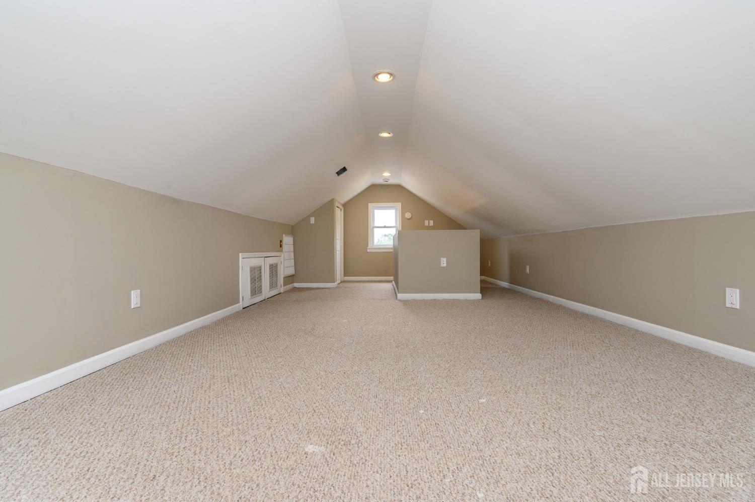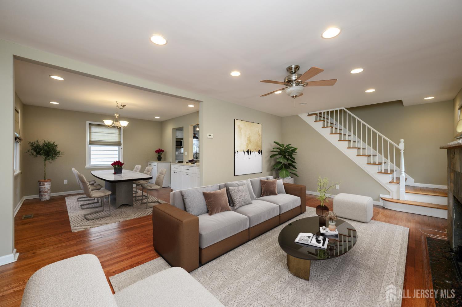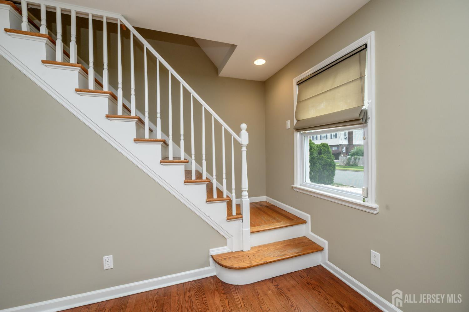 Home Sweet Home! Lovely 3 Bed 2.5 Bath Colonial with Finished Attic, Basement, & 1 Car Garage in historic Nutley could be the one for you! Well maintained inside & out on a prime corner lot in a great neighborhood, ready & waiting for you! Large covered rocking chair front porch welcomes you into a spacious interior w/generous room sizes, hardwood floors that shine, & plenty of natural light all through. Living Rm features recessed lighting & a cozy wood burning fireplace, perfect for those chilly nights. Formal Dining Rm makes dinner parties a breeze. Renovated Eat-in-Kitchen offers sleek SS appliances, quartz counters, subway tiled backsplash, ample cabinets storage, & delightful breakfast ledge w/passthrough window into the dining area for easy conversation. Convenient 1/2 bath rounds out the main lvl. Upstairs, the main full bath w/dual sinks along w/3 generous bedrooms. One bedroom features a soaring vaulted ceiling w/skylights that truly opens up the space! Finished Attic is an added bonus, great for an extra bedroom, home office, family room, etc. Basement boasts a versatile Rec Rm, 2nd full bath, laundry & storage. Quaint yard offers a patio w/sunsetter shade & privacy hedges, partially fenced-in for your comfort. 1 Car Garage & Driveway provides ample parking space. Conveniently located to parks, shopping, & dining, + major rds & public transportation, inc a shuttle service to the train station for easy commuting. Don't miss out! This could be the one!!