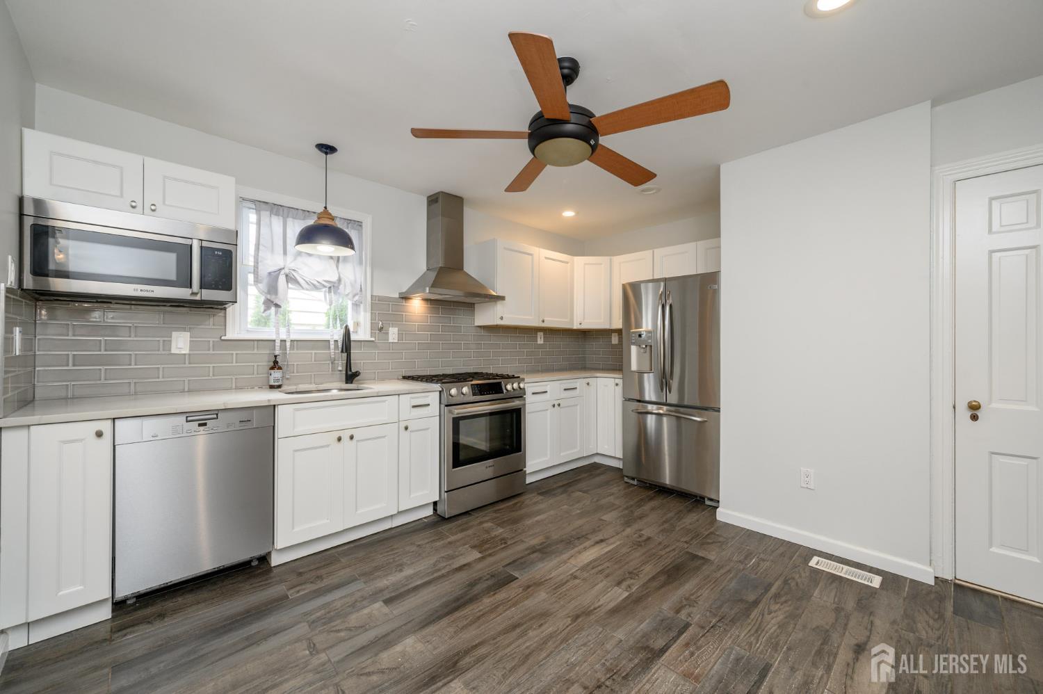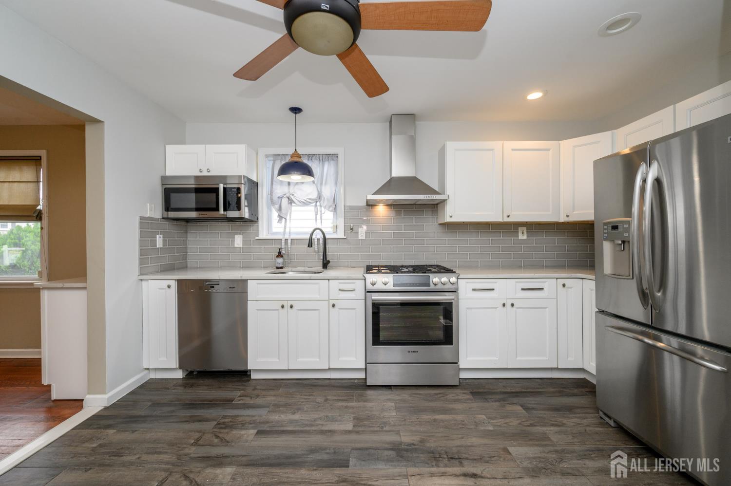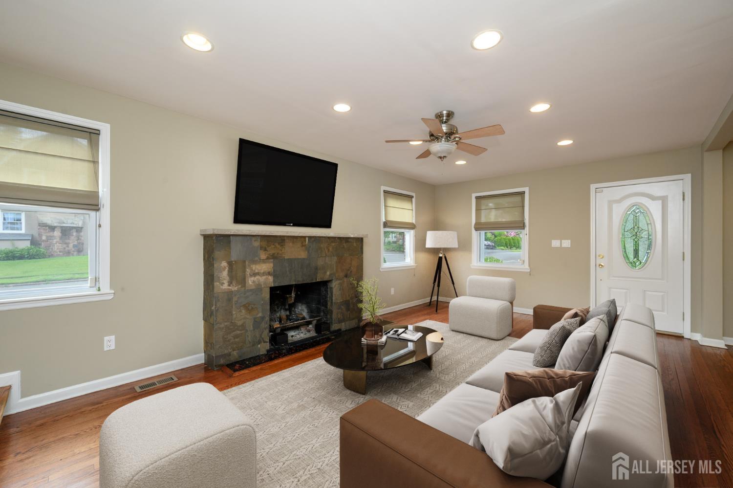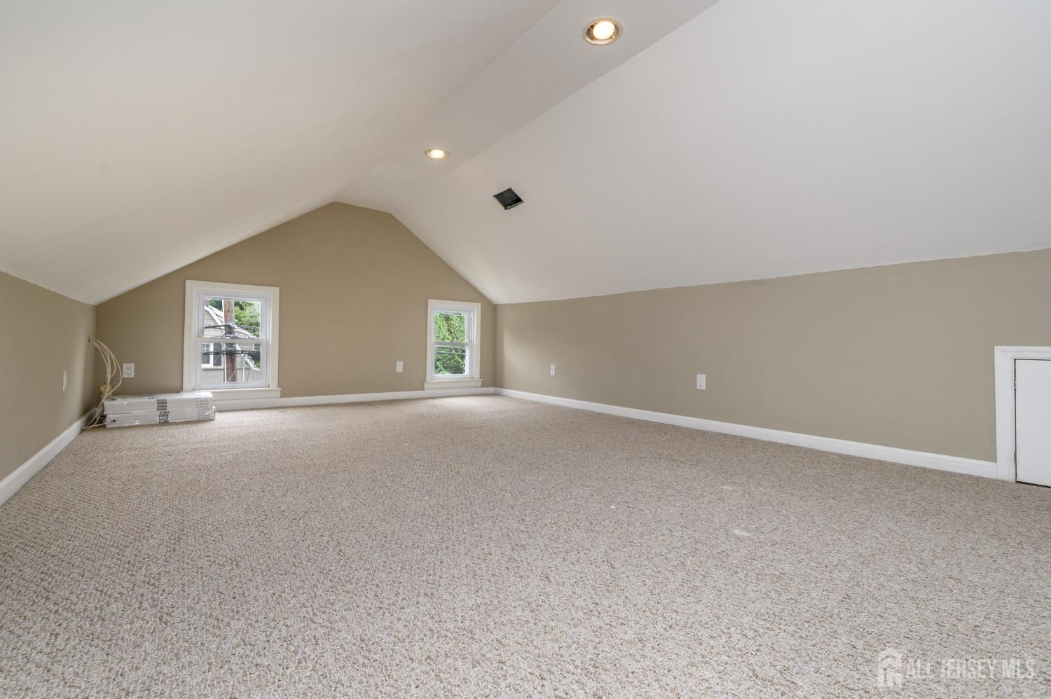 Home Sweet Home! Lovely 3 Bed 2.5 Bath Colonial with Finished Attic, Basement, & 1 Car Garage in historic Nutley could be the one for you! Well maintained inside & out on a prime corner lot in a great neighborhood, ready & waiting for you! Large covered rocking chair front porch welcomes you into a spacious interior w/generous room sizes, hardwood floors that shine, & plenty of natural light all through. Living Rm features recessed lighting & a cozy wood burning fireplace, perfect for those chilly nights. Formal Dining Rm makes dinner parties a breeze. Renovated Eat-in-Kitchen offers sleek SS appliances, quartz counters, subway tiled backsplash, ample cabinets storage, & delightful breakfast ledge w/passthrough window into the dining area for easy conversation. Convenient 1/2 bath rounds out the main lvl. Upstairs, the main full bath w/dual sinks along w/3 generous bedrooms. One bedroom features a soaring vaulted ceiling w/skylights that truly opens up the space! Finished Attic is an added bonus, great for an extra bedroom, home office, family room, etc. Basement boasts a versatile Rec Rm, 2nd full bath, laundry & storage. Quaint yard offers a patio w/sunsetter shade & privacy hedges, partially fenced-in for your comfort. 1 Car Garage & Driveway provides ample parking space. Conveniently located to parks, shopping, & dining, + major rds & public transportation, inc a shuttle service to the train station for easy commuting. Don't miss out! This could be the one!!