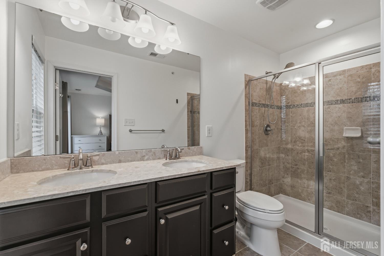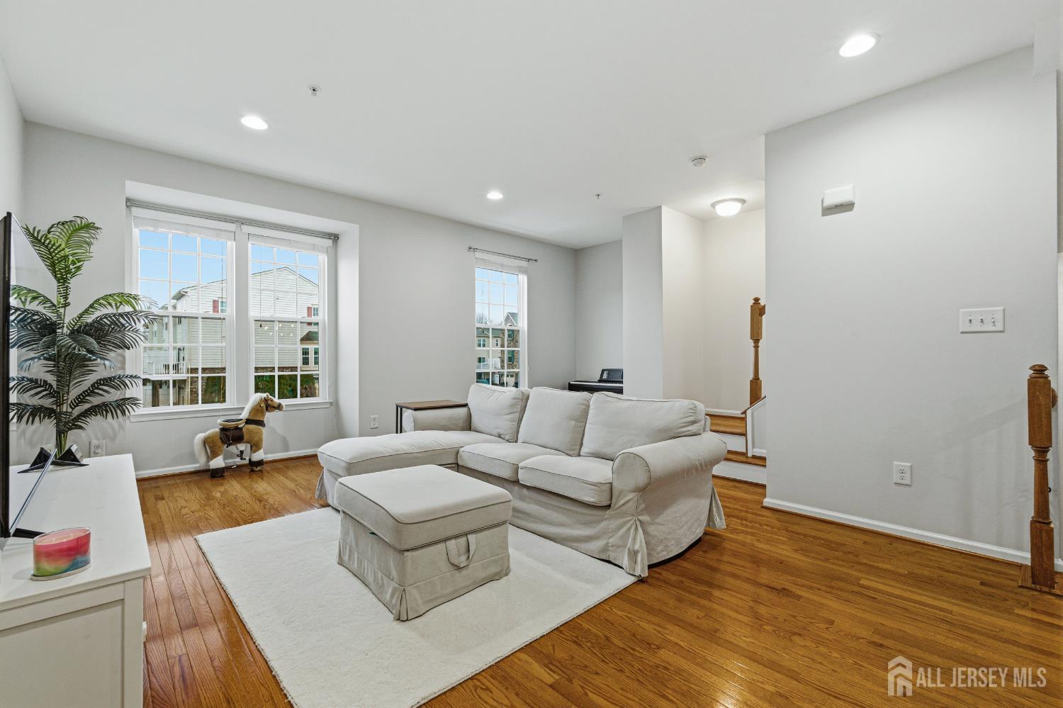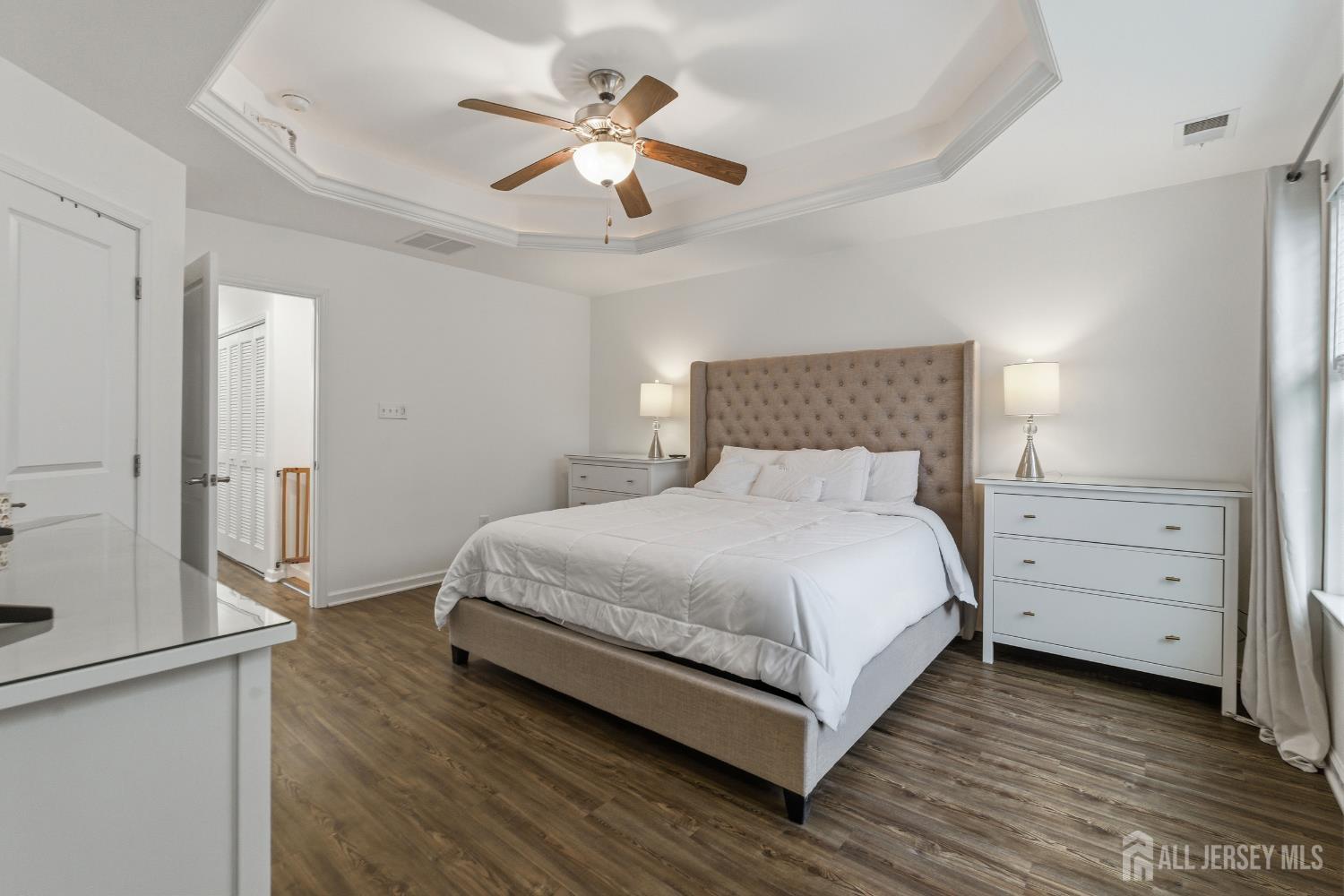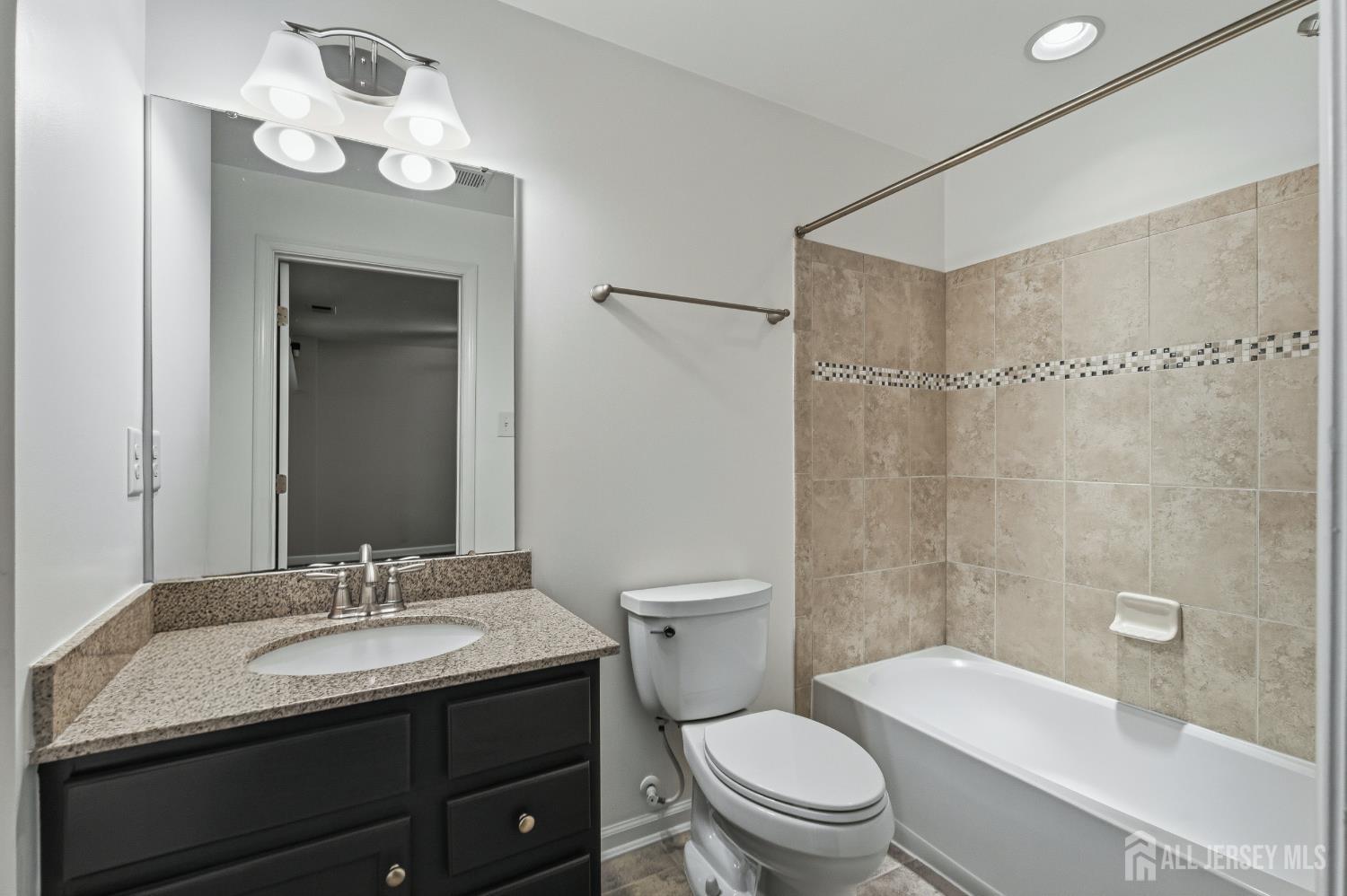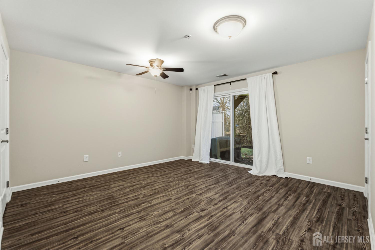 Welcome to this beautifully updated and move-in ready townhome offering 3 bedrooms and 3 full baths. Perfectly designed for modern living, this home blends style, space, and functionality across three finished levels. Step into the welcoming foyer featuring tile flooring, a convenient coat closet, and a separate shoe closet. The fully finished one-car garage provides excellent storage. The first floor showcases durable laminate flooring and offers incredible flexibility. A spacious room with walk-in closet, lighted ceiling fan, and full bath can easily function as a family room, guest suite, or fourth bedroom. The full bath is beautifully finished with tile flooring, granite countertop vanity, tiled tub/shower, recessed lighting, and window for natural light. Sliding doors lead to the backyard where you'll enjoy a paver patio beneath the deck and peaceful wooded views perfect for relaxing or entertaining. Upstairs on the second level, hardwood floors flow throughout the open concept living and dining areas, highlighted by recessed lighting and abundant natural light. The stunning kitchen features granite countertops, 42'' coffee-colored cabinets, stainless steel appliances, (new LG dishwasher) tile backsplash, pantry closet, and a center island with breakfast bar, drawers, and additional cabinetry. A slider off the dining area leads to a Trex deck, creating the perfect indoor-outdoor entertaining space. The third floor offers comfortable living with updated laminate flooring throughout. The primary suite impresses with a vaulted tray ceiling with accent lighting, lighted ceiling fan, walk-in closet, and a beautifully appointed ensuite bath featuring tile floors, double sink granite vanity, and a fully tiled glass-enclosed shower. Two additional bedrooms offer ample closets and ceiling fans, while the hall bath includes tile flooring, granite vanity, and tiled tub/shower with decorative border. A convenient laundry closet with newer LG front-loading washer and dryer completes this level. Outside, the home features a one-car driveway, concrete walkway, charming front porch with balcony above, and attractive stone and vinyl exterior. Additional guest parking is available nearby. Close to trains, bus line, shopping & all major roadways. 6 mins to beaches. This modern, stylish townhome with flexible living space and numerous updates is truly a must-see!